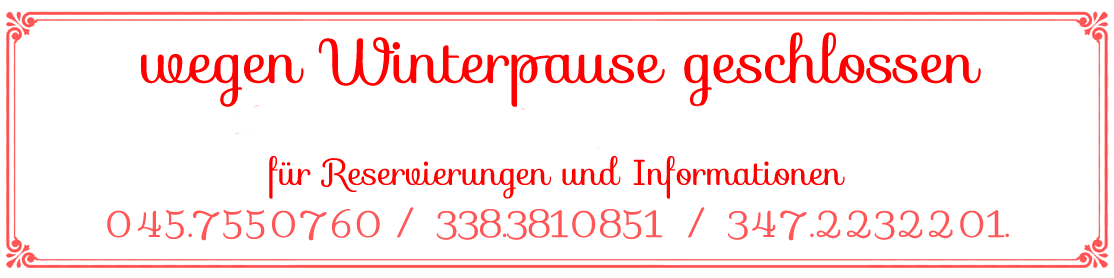 Viele im Allgemeinen die Alternativen der frischen Teigwaren der eigenen Produktion sowie des Brotes; Wir erwähnen die klassischen Tortellini mit zerlassener Butter und die Kürbistortellini mit Monte Veronese Stracchino.